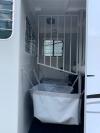 DRESSING ROOM: 5', 20 x 24 crank out nose windows, 2 saddle racks, 6 bridle hooks, carpet on floor, raised floor from horse area for ease of entry/exit with big tack boxes, ease of sweeping out and never any chance of leakage from horse area to tack area, spare tire and wheel, battery box for emergency break away system, fuse box, bulkhead window with slider to horse area.