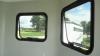EXTERIOR: Aluminum skin on light weight preformed galvanized frame, aerodynamic V nose, no side rivets, 2 exterior ties, reinforced fiberglass roof, fiberglass fenders, 2 man doors with 20 x 24 windows with screens and sliders & double key lock system,20 x 51 horse area windows with screens and sliders, rear tail curtains 2 point latches, and mechanical tie backs, sure grip gentle slope ramp, safety break away system, , 18" diamond plate on nose, diamond plate on fender fronts and tongue. Outside light switch for interior horse area lights, running board step to dress room, heavy duty full length ramp bumperr
