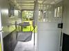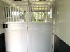 INSIDE HORSE AREA: 8 ft front box stall, 10 1/2' rear straight stalls/or rear box stall, bar across ramp opening and man door, Lined and insulated to roof (roof is self insulating) (including doors and tail curtains), removable front tubular head divider and front post, padded swing/removable stall divider , 3 horse tie rings per straight stall, 2 tie rings in box stall, padded butt and chest bars with safety stoppers (straight load horses), rear header pad, all movable parts powder coated, 90" butt to chest ( in the straight load stalls) with butt bars moved forward off the ramp, divider pads, side wall rubber up 48", 54" side ramp 4 - 2 way roof vents, man door with window/screen/slider opposite side ramp, 2 feed bags, bifold box stall divider doors with upper tubular section, integrated rear divider hold back, ramp on ditch side with curtain door, widow/screen/slider/bars. 48
